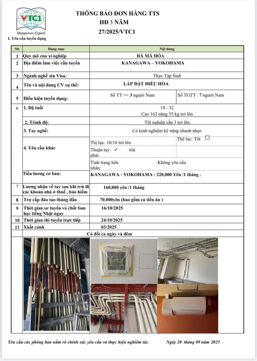 Vị trí: Thực tập sinh kỹ năng (Trainee) – Ngành lắp đặt